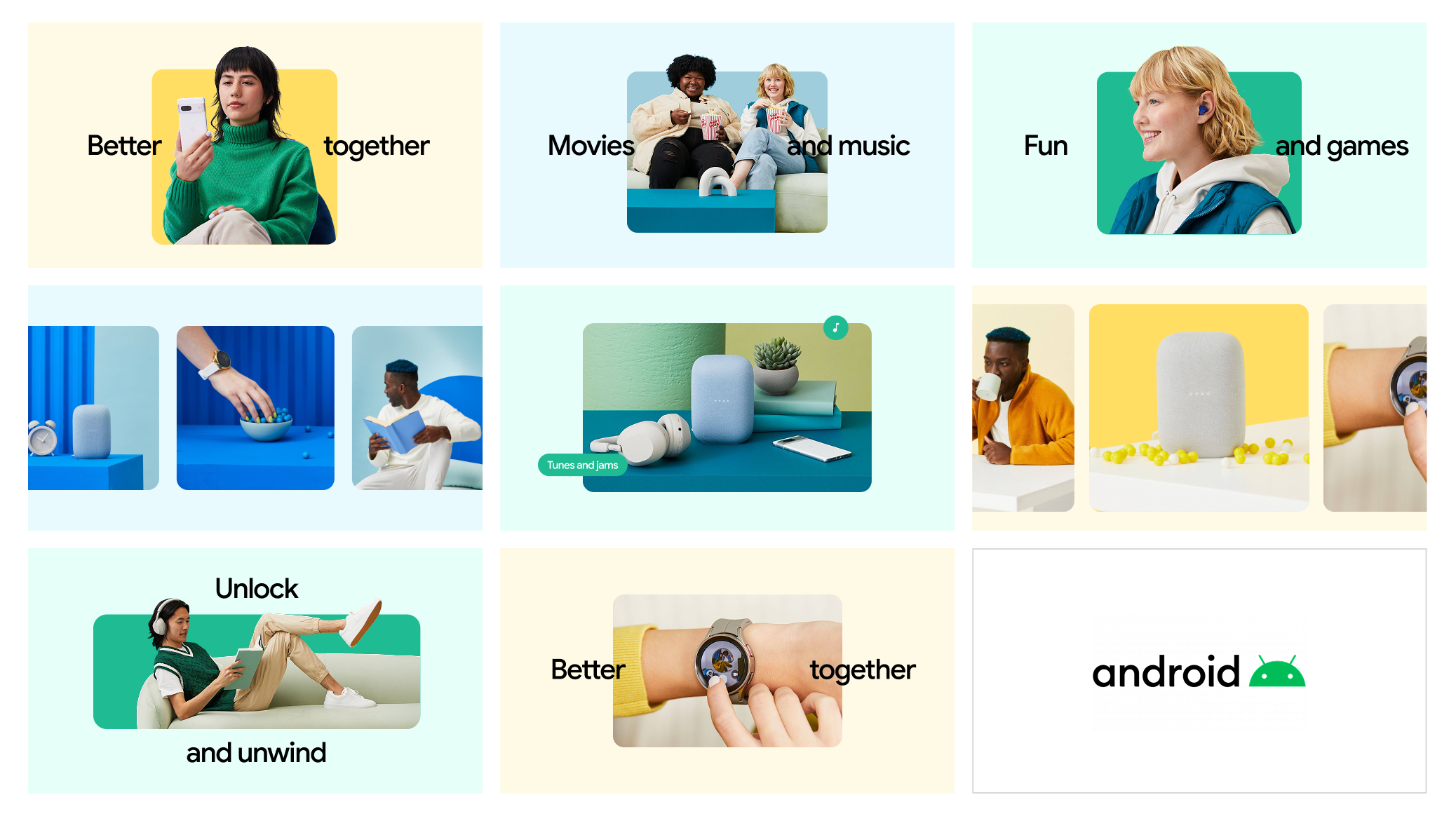 I led the development of a cast of nearly 60 Android characters—a playful evolution of the familiar logo mark. Each character had a unique personality, adding sparks of joy while reinforcing the message that Android connects a universe of products.